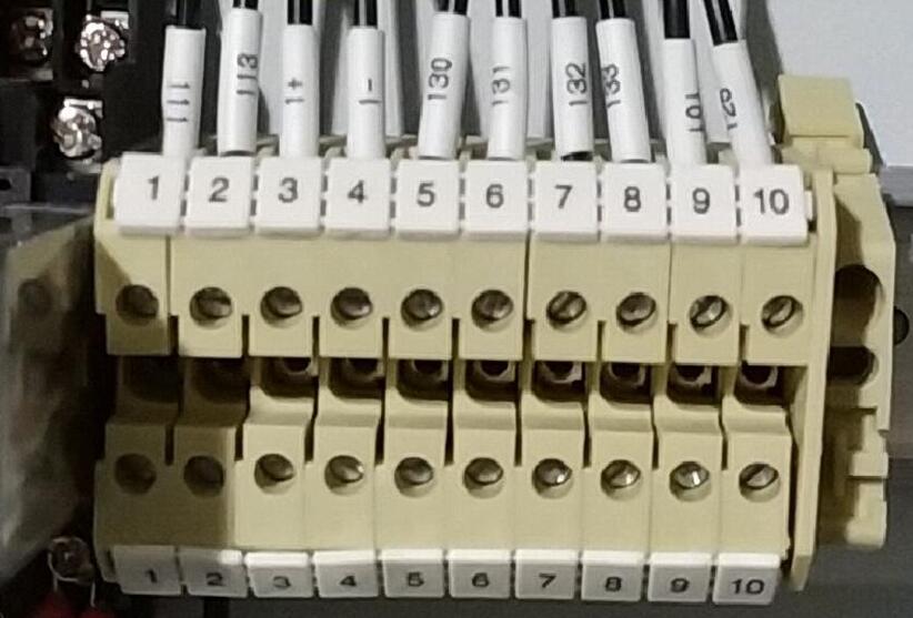 1、防火阀闭锁点为无源闭点信号1JX1,2;线号为“111”“113”(由排烟风机防火阀提供,无此功能就短接)2、消防联动DC24V信号接入端子1JX3,4; 线号为“+”“-”3、风机运行反馈信号为无源信号端子1JX5,6; 线号为“130”“131”4、风机故障反馈信号为无源信号端子1JX7,8; 线号为“132”“133”5、消防联动无源短接信号接入端子1JX9,10; 线号为“101”“125”端子图如下: